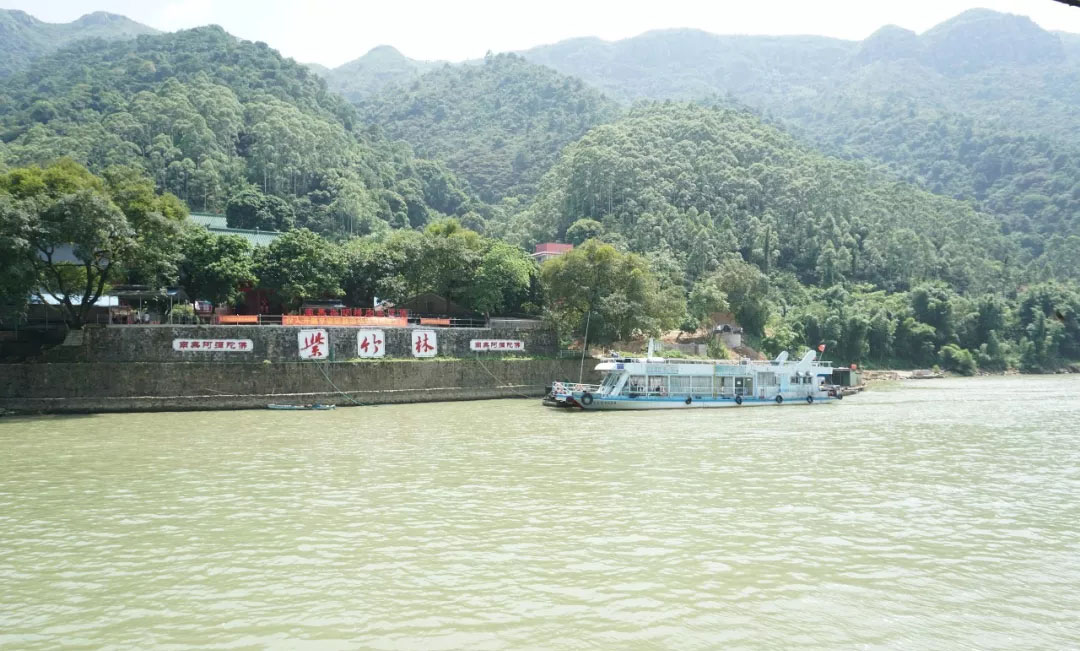 到了清遠不能不游江,游江不能不到小北江。在清新縣源潭鎮(zhèn)的江口碼頭,一溜兒地排著大大小小的漁船供游客挑選,豐儉由人。盡管路途長達三個多小時的車程,大家還是一路高歌,只是肚子確實已經(jīng)餓的呱呱叫了。第一站大家在小北江的游船上品嘗當?shù)靥厣撕透魇胶吁r,穿梭在兩岸的竹林之中,景色秀麗,別有一番風味。