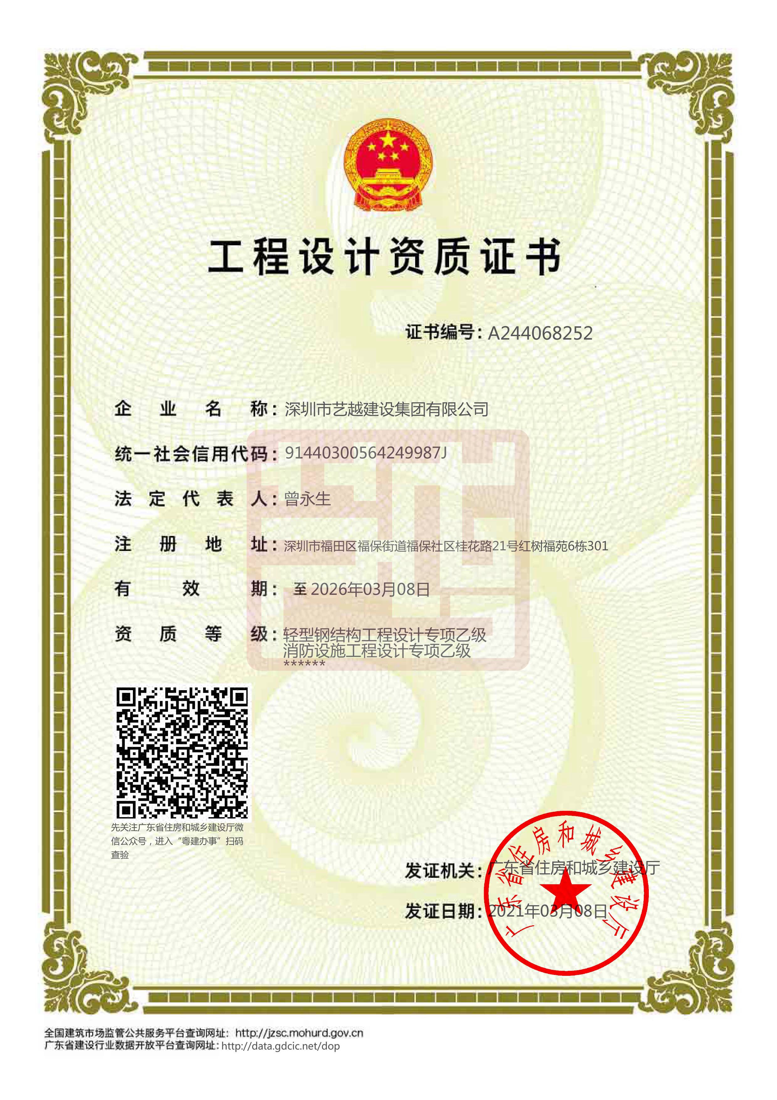 在各級領導的關懷與全體人員的努力下,藝越建設集團申報的“輕型鋼結構工程設計專項乙級”與“消防設施工程設計專項乙級”兩項資質通過審核,成功實現(xiàn)晉升!