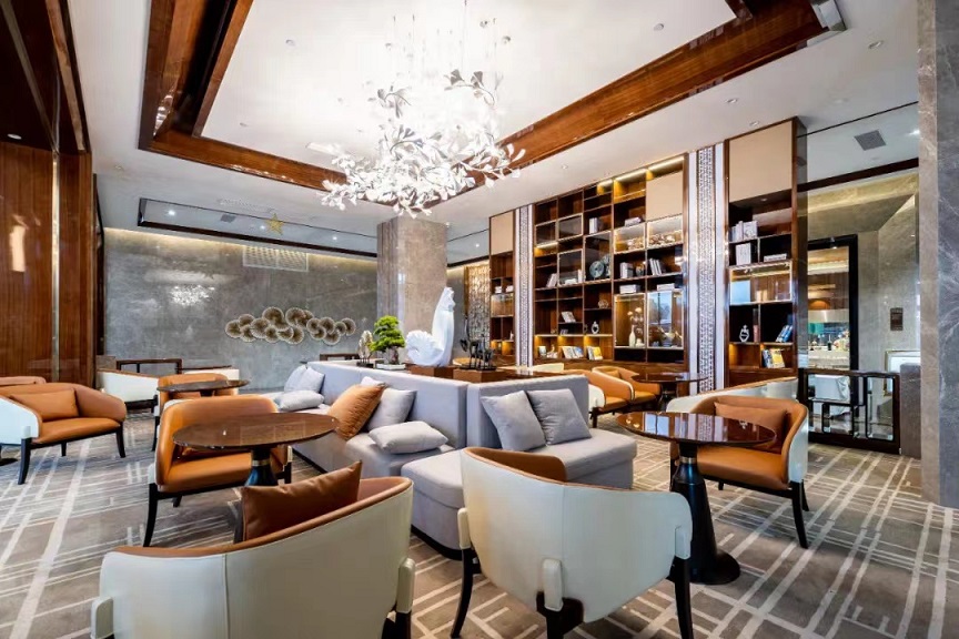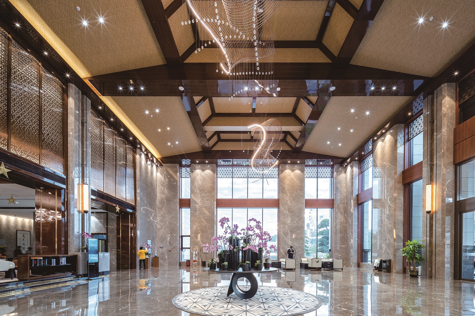 ▲氣勢恢宏的酒店大堂,融合當?shù)匚幕b飾風格,造就了富麗堂皇,別具一格的國際五星品牌酒店