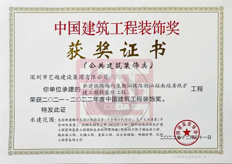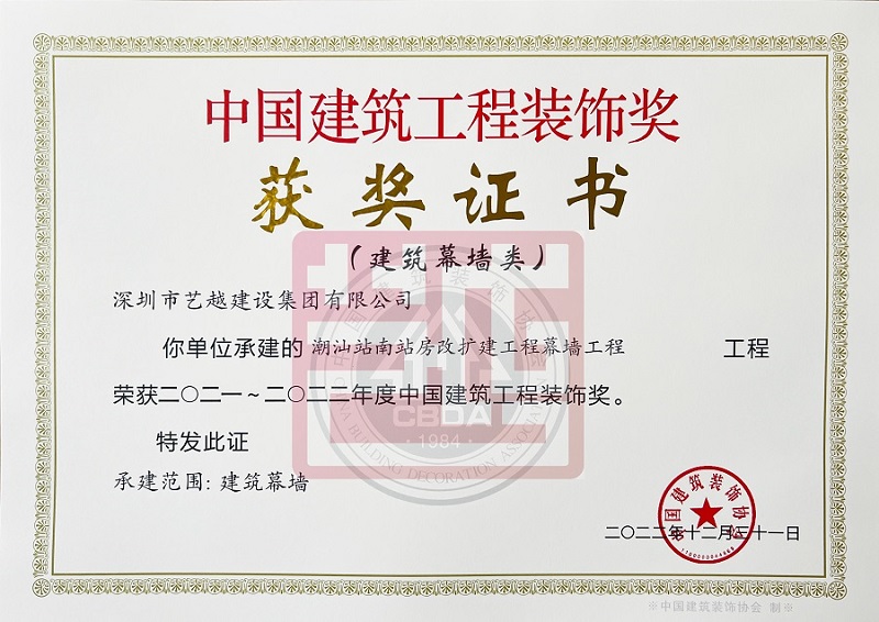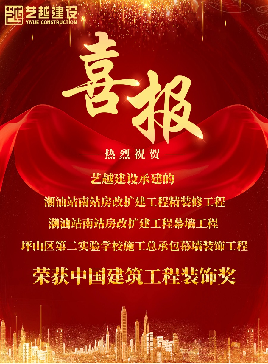 近日,備受關注的中國建筑裝飾獎揭曉,由藝越建設承建的新建鐵路梅州至潮汕鐵路潮汕站南站房改擴建工程、潮汕站南站房改擴建工程幕墻工程、坪山區(qū)第二實驗學校施工總承包幕墻裝飾工程,榮獲建筑裝飾行業(yè)最高榮譽獎項——中國建筑工程裝飾獎,為我司榮譽墻再添新勛章!