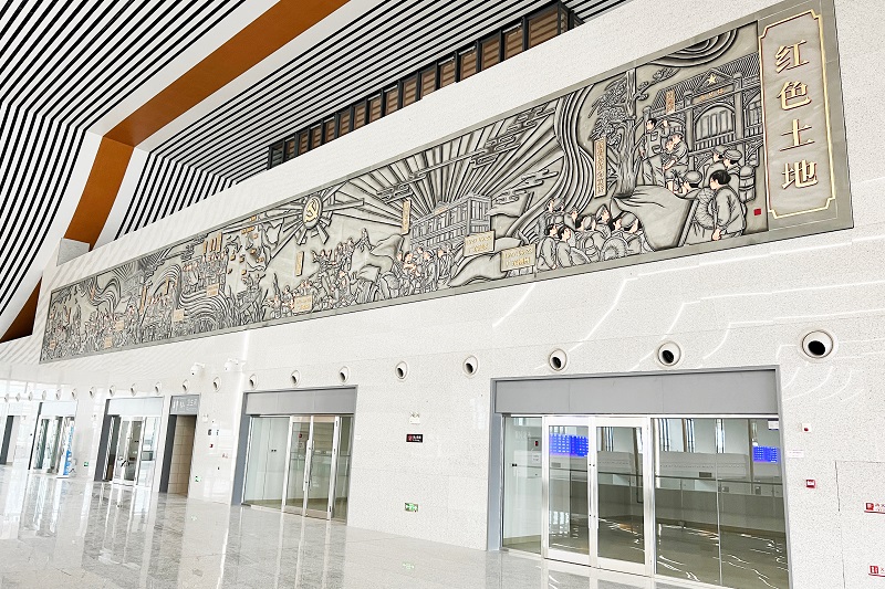新建梅汕鐵路潮汕站南站房改擴建工程位于廣東省潮州市潮安區(qū),建筑面積31992㎡,主體一層局部三層,其中新建站房面積28804㎡,改建站房面積3188㎡。包括新建梅州至潮汕鐵路站房(不含潮汕機場站)、生產生活房屋(不含四電房屋)、雨棚及相關工程(MSZH-4標)潮汕站南站房改擴建工程裝飾裝修工程、樓地面工程、墻柱面工程、天棚工程、屋面工程、站臺面鋪貼、雨棚涂飾、欄桿工程等。潮汕站南站房在嶄新的候車大廳,“幾”字形燈帶與屋頂融合,飽含潮汕民居五行山墻神韻。大廳兩側的商業(yè)夾層墻體“千年古城”及“紅色土地”歷史文化主題石雕,展現潮汕地區(qū)深厚的歷史文化底蘊和悠久的紅色基因。站房以‘海濱鄒魯 古韻新潮’為主題,提取五行山墻、廣濟樓等文化元素,運用現代、抽象設計手法,將潮汕古韻、人文與簡潔、現代的裝修設計融為一體,深入挖掘區(qū)域文化內涵。