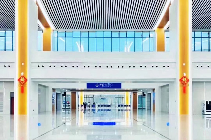 新建鐵路梅州至潮汕鐵路潮汕站南站房改擴建工程幕墻工程采用豎明橫隱玻璃幕墻、石材幕墻、鋁板幕墻等,幕墻總面積32000㎡,潮汕站建筑造型融入了當地特色的斜屋面、虎頭墻等風格元素; 屋頂采用傳統(tǒng)穿斗式和架梁蓋瓦的硬山頂結構,玻璃幕墻上嵌有大副木雕花窗,與現代化玻璃鋼結構相映襯,站房遠眺猶如一座潮汕民居。
