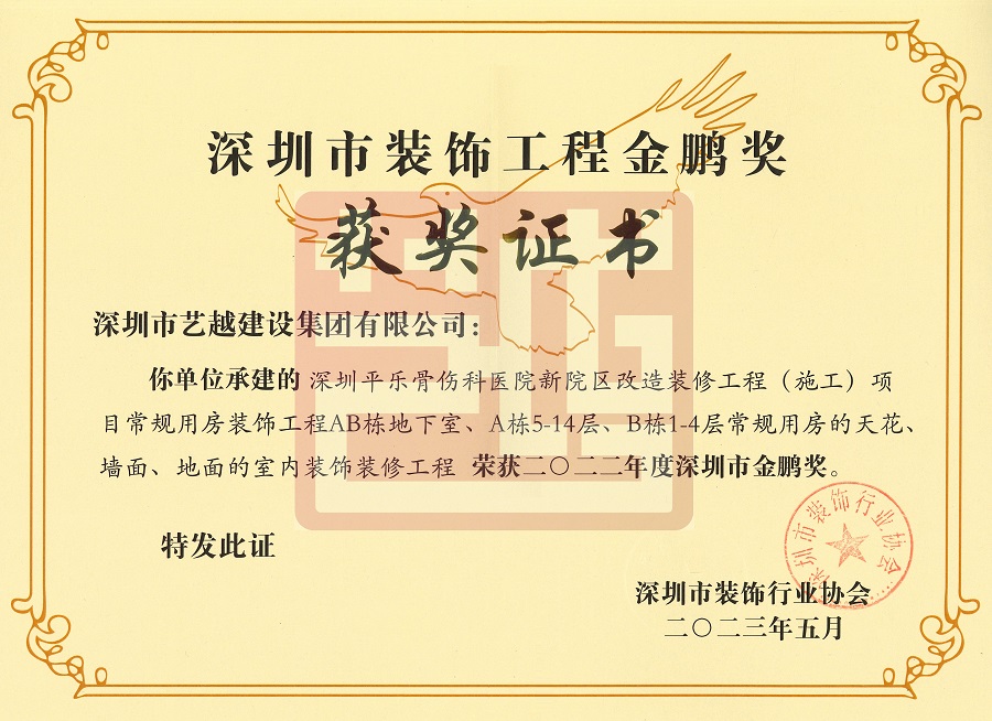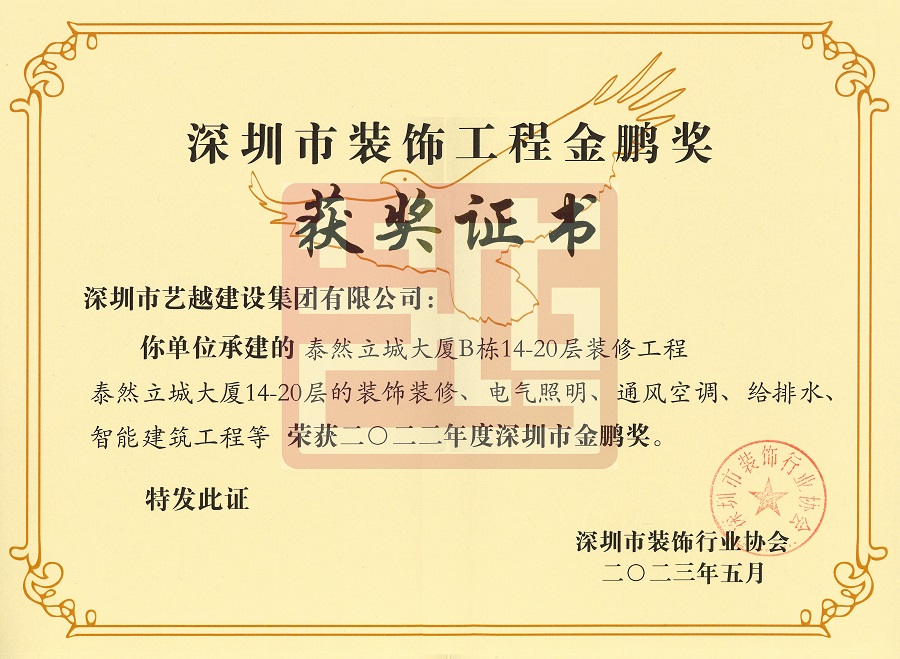 近期,在深圳市裝飾行業(yè)協(xié)會(huì)發(fā)布的“2022年度深圳市裝飾工程金鵬獎(jiǎng)”評(píng)選結(jié)果公告中,由藝越建設(shè)承建的: