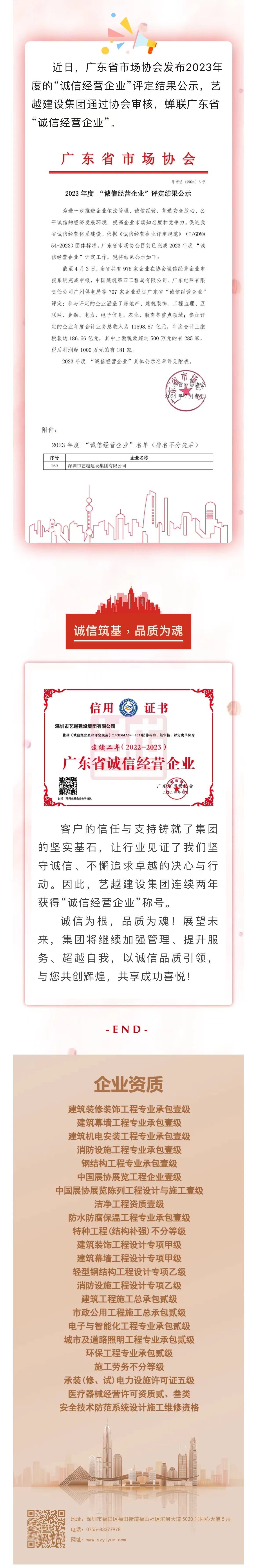 藝越基石 | 連續(xù)兩年榮獲“誠信經(jīng)營企業(yè)”稱號