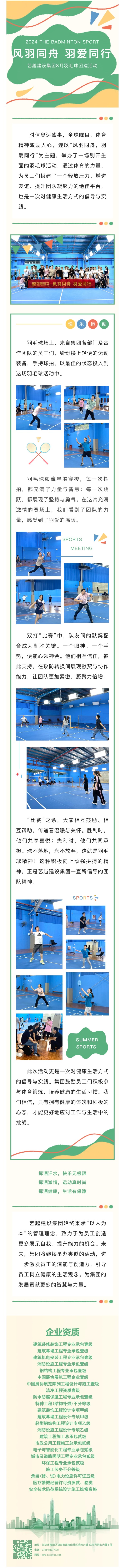 深圳市藝越建設集團有限公司,成立于2010年10月22日,注冊資金為6180萬元,是一家是集建筑、室內外裝飾設計與施工、智能化、市政于一體的綜合性、專業(yè)化的集團公司。具有建筑裝修裝飾工程專業(yè)承包壹級、建筑幕墻工程專業(yè)承包壹級、建筑機電安裝工程專業(yè)承包壹級、消防設施工程專業(yè)承包壹級、鋼結構工程專業(yè)承包壹級、中國展協(xié)展覽工程企業(yè)壹級、中國展協(xié)展覽陳列工程設計與施工壹級、潔凈工程資質壹級、防水防腐保溫工程專業(yè)承包壹級、特種工程(結構補強)不分等級、建筑裝飾工程設計專項甲級、建筑幕墻工程設計專項甲級、輕型鋼結構工程設計專項乙級、消防設施工程設計專項乙級、建筑工程施工總承包貳級、市政公用工程施工總承包貳級、電子與智能化工程專業(yè)承包貳級、城市及道路照明工程專業(yè)承包貳級、環(huán)保工程專業(yè)承包貳級、施工勞務不分等級、承裝(修、試)電力設施許可證叁級、醫(yī)療器械經(jīng)營許可資質貳、叁類、安全技術防范系統(tǒng)設計施工維修資格。質量管理體系(GB/T19001-2016 / ISO9001:2015)標準認證、職業(yè)健康安全管理體系(GB/T28001-2011)標準認證,環(huán)境管理體系(GB/T24001-2016/ISO14001:2015)標準認證,誠信管理體系(GB/T 31950-2023)標準認證,售后管理體系(GB/T27922-2011)標準認證。中國建筑裝飾協(xié)會常務理事單位、AAA資信單位、連續(xù)十四年被評為“守合同重信用企業(yè)”。