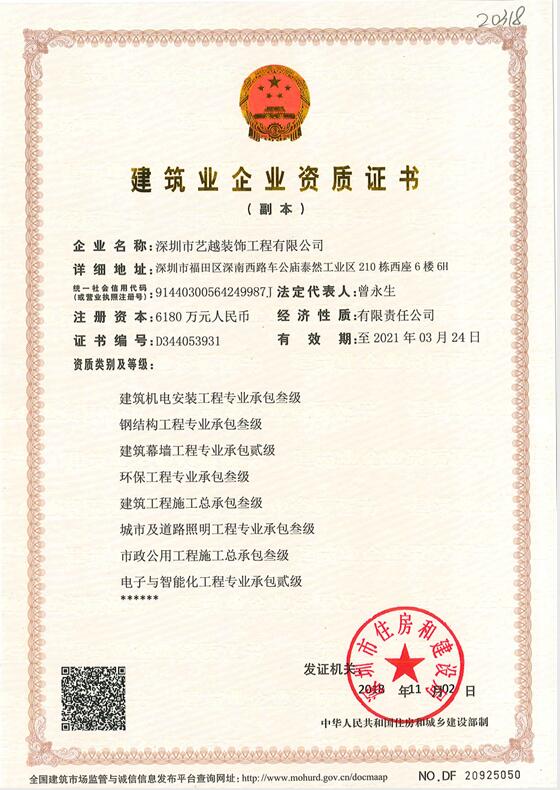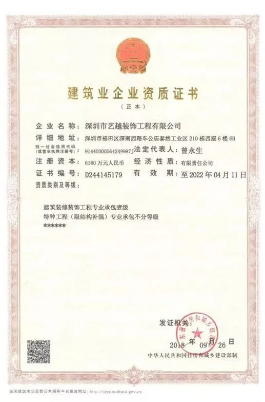 ??? 原深圳市藝越裝飾工程有限公司,已全新升級為深圳市藝越建設集團,從2019年06月27日起公司名稱正式變更為:深圳市藝...