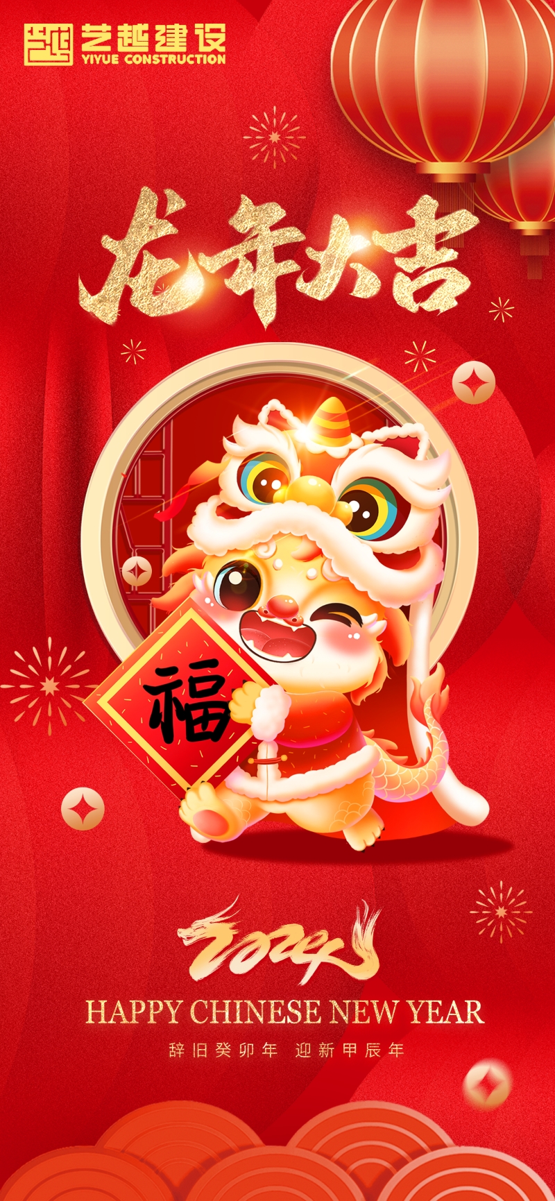 除夕到!萬家燈火通明,祝福聲聲不斷在這辭舊迎新的時(shí)刻藝越建設(shè)恭祝全體同仁以及合作伙伴們龍年大吉、幸福安康在新的一年...